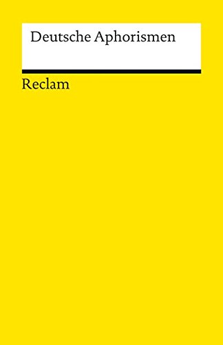 Deutsche Aphorismen Reclam Verlag ~ Deutsche Aphorismen 383 S 880 Euro Eine chronologisch angelegte Auswahl in der die wichtigsten Vertreter der deutschen Literatur die den Aphorismus als eigene Kunstform pflegten mit ihren meisterlichen Schöpfungen zu Wort kommen von Lichtenberg und Goethe über Nietzsche und Karl Kraus bis Handke Botho Strauß und Martin Walser